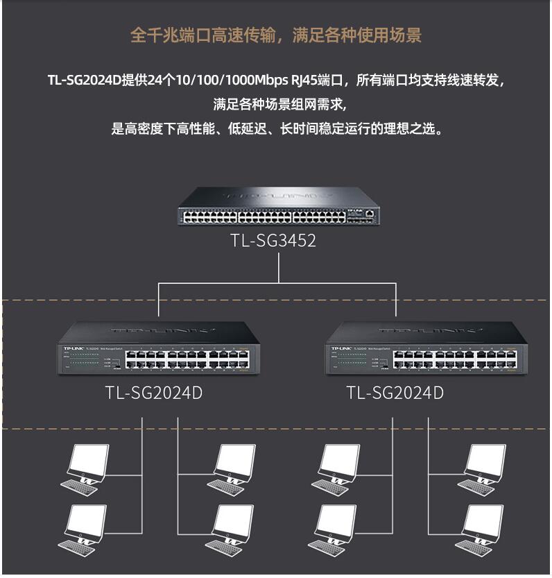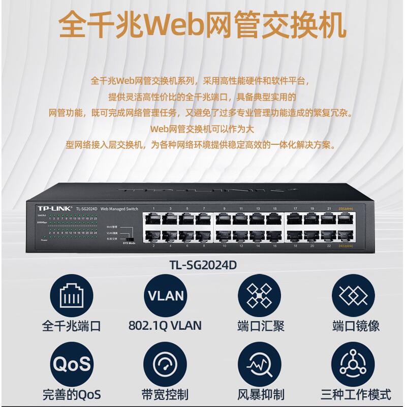 tplink24口千兆交換機(jī)16口48口百兆監(jiān)控專用網(wǎng)絡(luò)無線網(wǎng)線分流轉(zhuǎn)換交換器以太網(wǎng)企業(yè)web網(wǎng)管級VLAN匯聚SG2024D
