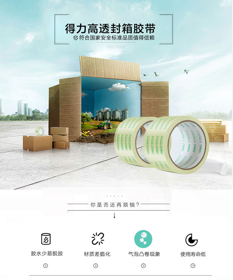 得力(deli)高品質高透明封箱膠帶打包膠帶 60mm*40y*50um(36.6m/卷) 1卷裝 辦公用品 30367