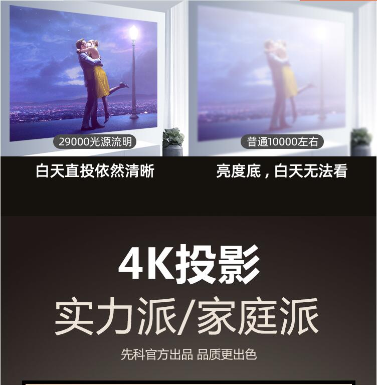 先科家用投影儀4K超高清家庭影院白天培訓手機辦公室用會議投影機