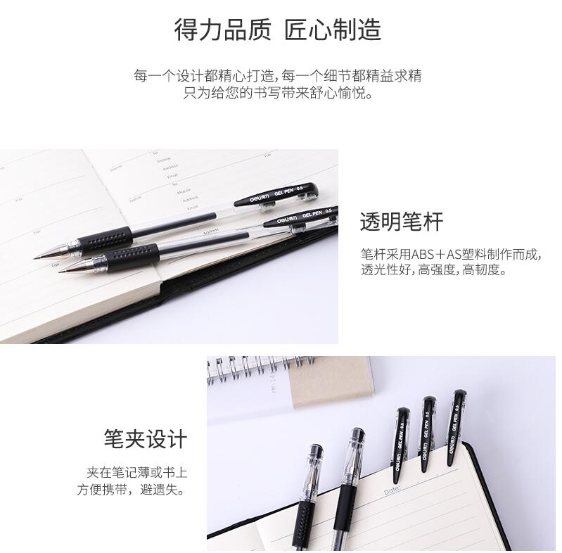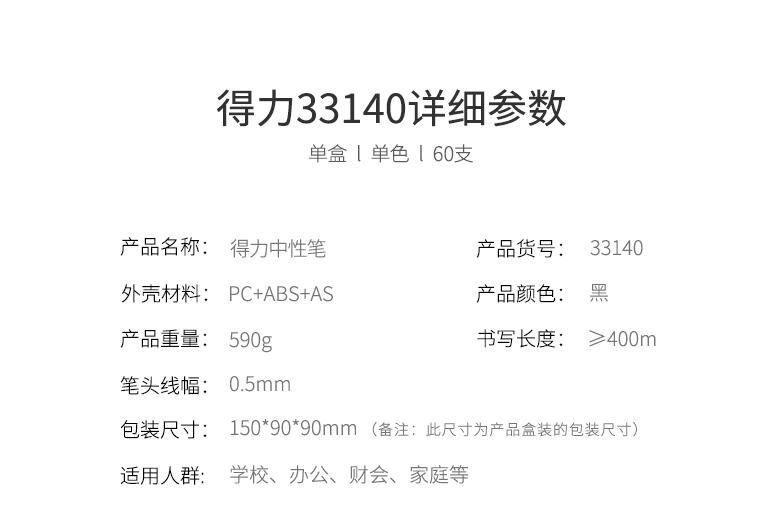 得力文具33140 中性筆學生考試量販式黑筆水筆碳素筆0.5mm 60支裝